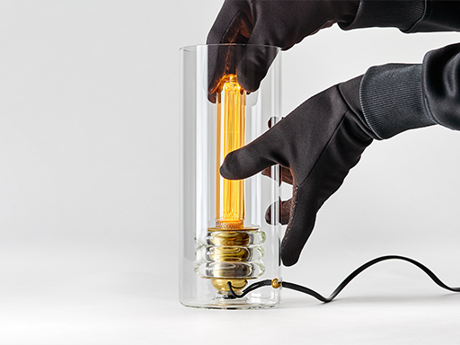 Inspired by the Art Deco heritage and savoire faire of inter-war Romania and at the same time by the struggle and genius of Nikola Tesla, the limited edition numbered series of the Cuplo Nude lamps, crafted and assembled in Bucharest, highlight the contrast between the fragility and clarity of borosilicate glass and the beauty of light. No more shading, just pure light - shining on and through the brittle clarity of glass, adorned with a touch of brass.